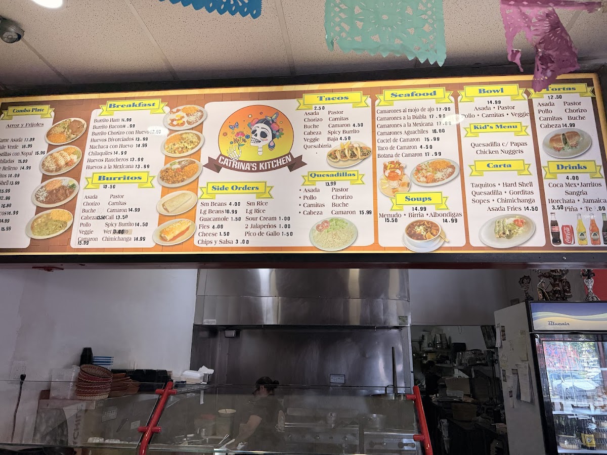 Shrimp sautéed in garlic sauce, served with Mexican rice, refried beans topped with cheese, and a side of lettuce, tomato, and lemon wedges.